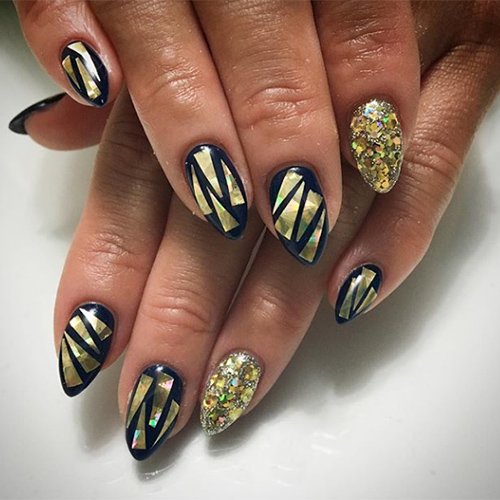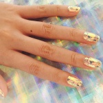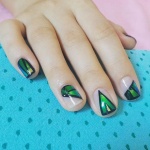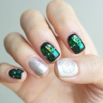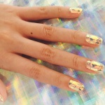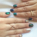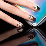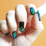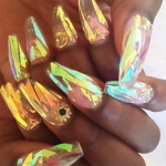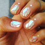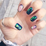 Такой нейл-дизайн делается с помощью обычного лака и специальных пластинок, внешне напоминающих кусочки стекла. Ну просто вау!