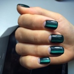 Второй способ - чтобы добиться еще большей глубины эффекта, рекомендуем наносить такое покрытие на черную основу т.е. нижний слой сделайте любым черным гель-лаком и просушите.