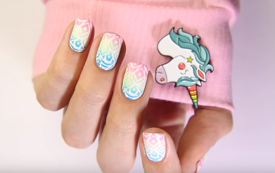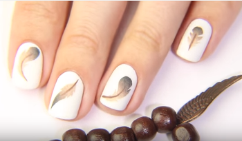 Маникюр "Перья" с трафаретами