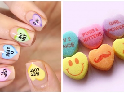 Симпатичный маникюр ко Дню Святого Валентина - конфетки Sweethearts